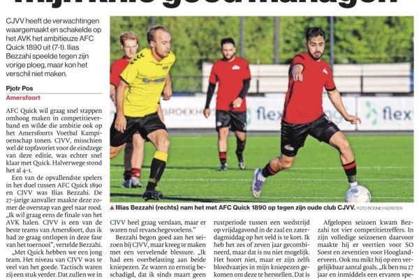 Een van de opvallendste spelers in het duel tussen AFC Quick 1890 en CJVV was Ilias Bezzahi. De 27-jarige aanvaller maakte deze zomer de overstap van geel naar rood. "Ik wil graag eens de finale van het AVK halen. CJVV is een van de beste teams van Amersfoort, dus ik had ze graag ontlopen in deze fase van het toernooi'', vertelde Bezzahi.